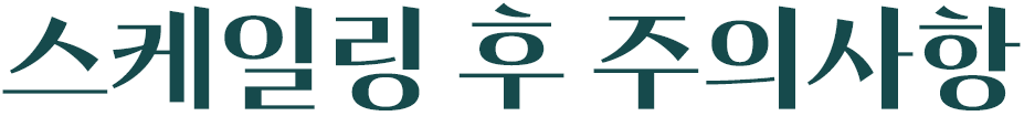 스케일링은 잇몸치료의 전부가 아니라 시작에 불과합니다. 대부분 한 번 내원으로 끝나지만 다량의 착색과 치석 제거 시엔 1-2회 정도 내원이 추가됩니다.